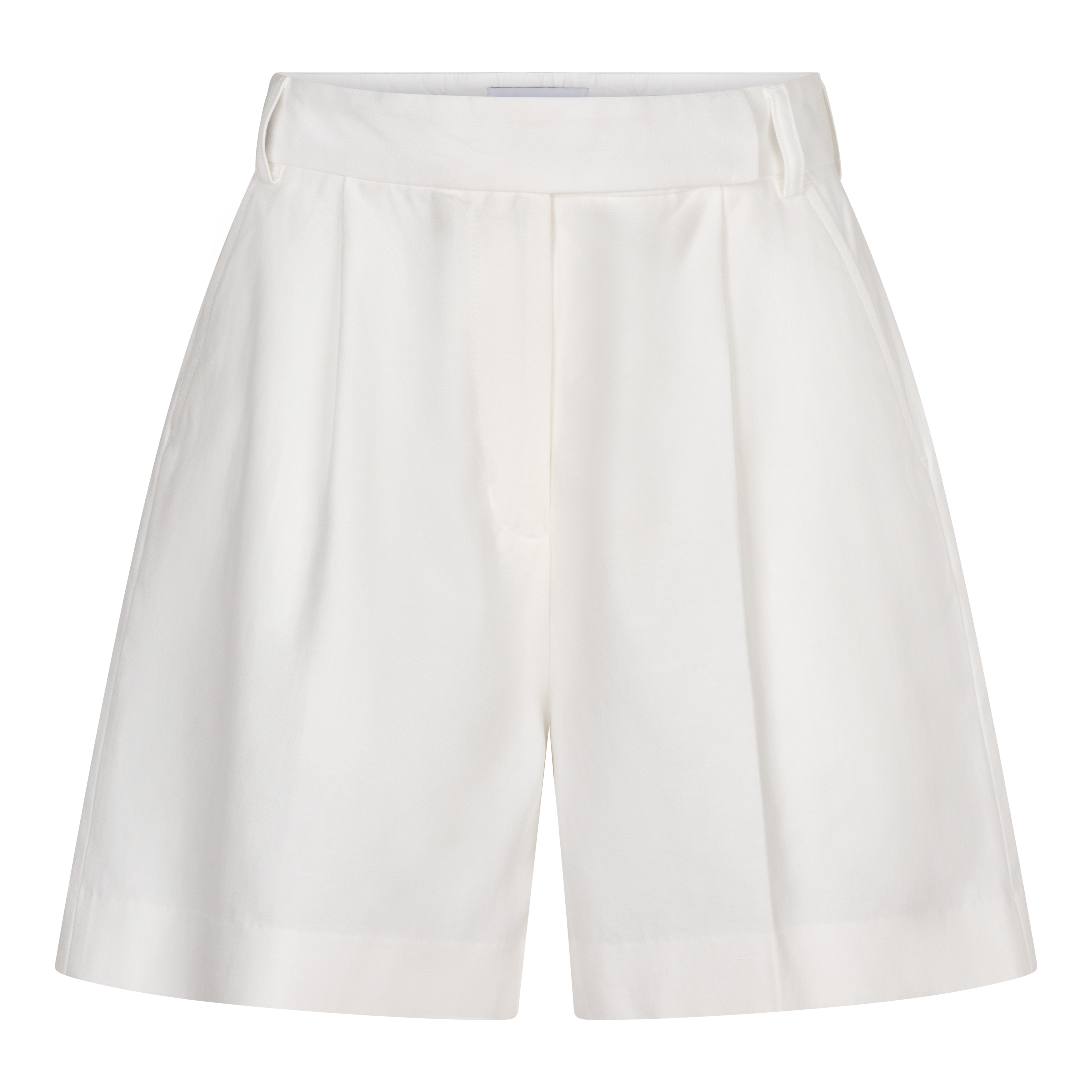 - High-waisted silhouette with front pleats